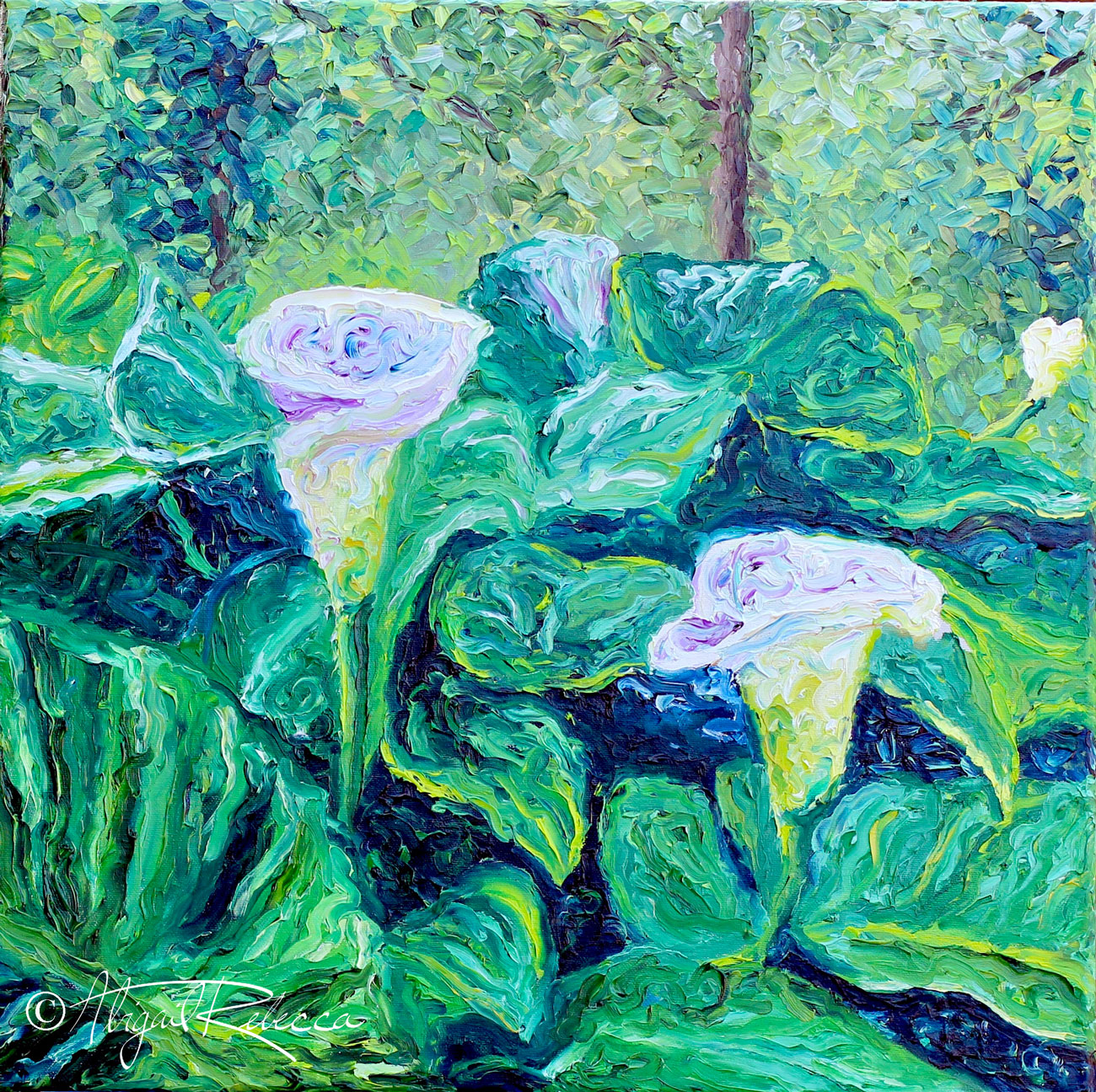 NewBeginningsCallaLilliesFingerPaintingGreenFull April 15, 2020Full resolution (1300 × 1296) ← Previous Next → CallaLillies Oil Finger Painting Young Calla Lillies arise from the shadows creating new beginnings. Oil finger paintings.